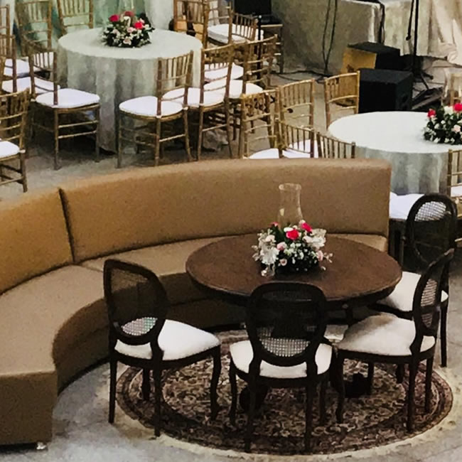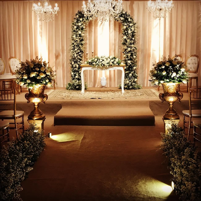 Organizamos a decoração da igreja, da festa e todos os detalhes envolvidos: buffet, bebidas, garçons, cobertura fotográfica e de filmagem.